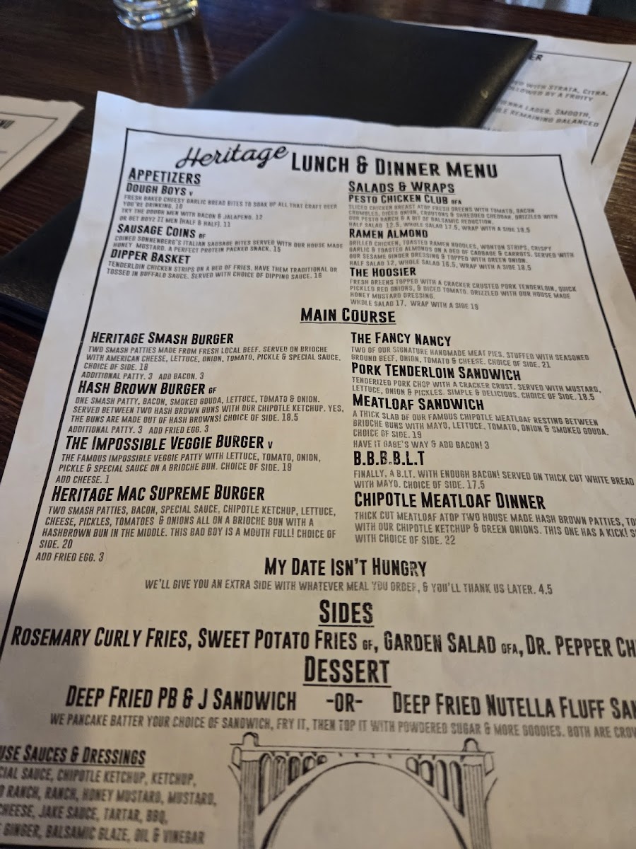 For the main course, Heritage delivers with options like The Hoosier, a hearty dish that packs plenty of flavors into each serving. Alternatively, the Pesto Chicken Club provides a lighter, yet equally tasty option with its aromatic pesto and tender chicken.